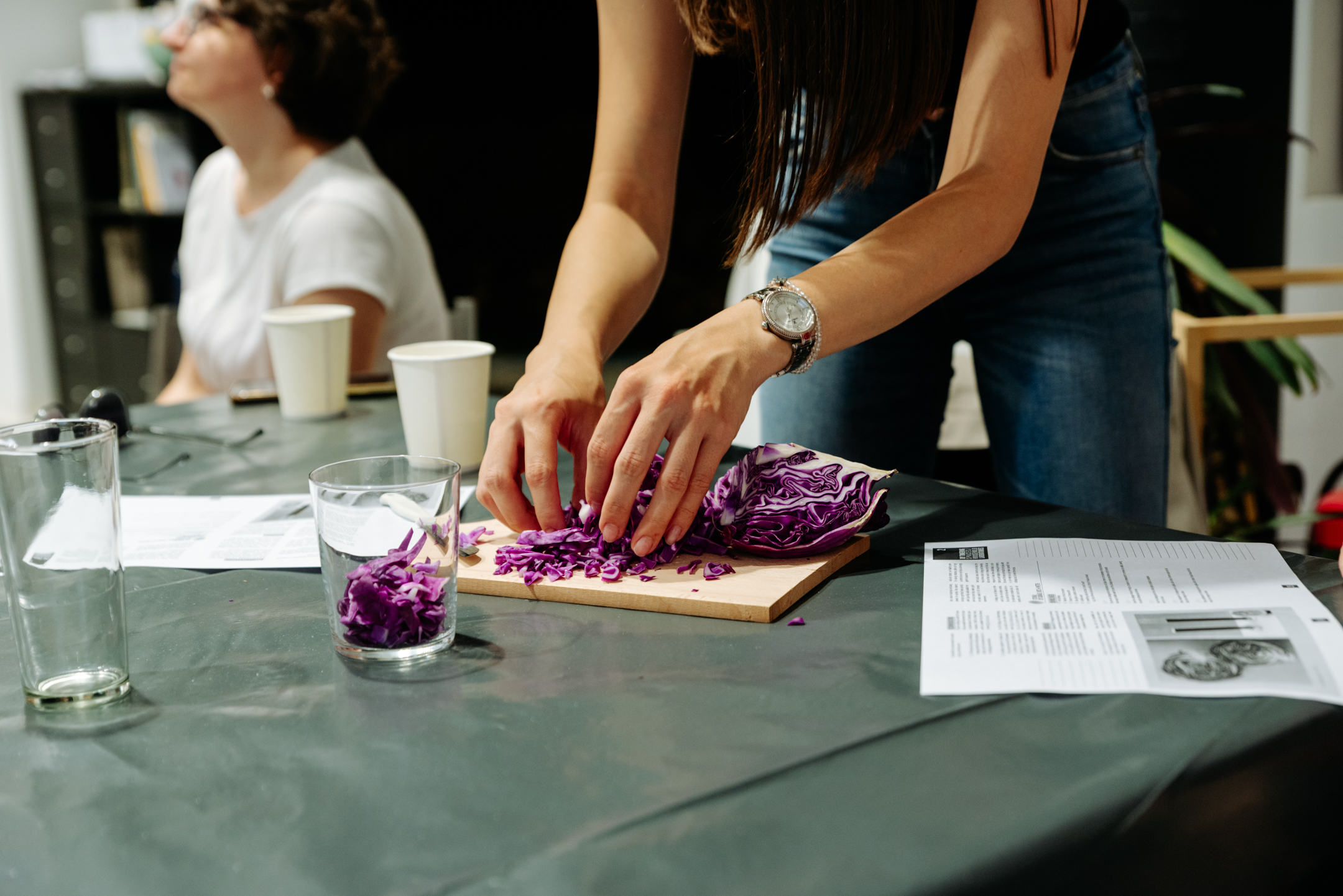 Drugi dan radionica je u potpunosti posvećen praktičnom radu i eksperimentisanju. Učesnici će raditi u malim grupama, upoznati se sa osnovnim principima laboratorije za biomaterijale, i – pod stručnim nadzorom – razvijati svoje uzorke biomaterijala. Rad će se bazirati na jednostavnim i dostupnim sastojcima: biološkom otpadu iz kuhinje (npr. ljuske jaja, talog kafe), prirodnim pigmentima (kao što su spirulina, kurkuma, aktivni ugalj) i biorazgradivim, netoksičnim vezivnim agentima. Proces uključuje mešanje sastojaka, oblikovanje i modeliranje materijala, sušenje, eksperimentisanje sa teksturama i bojama, kao i dokumentovanje rezultata u takozvanom “laboratorijskom dnevniku”. Svaka grupa beleži proporcije, zapažanja i faze procesa putem teksta i fotografija.