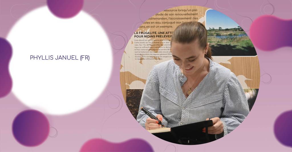 Phyllis Januel (FR) potiče iz regiona Drôme/Ardèche, a njena duboka povezanost sa ruralnim okruženjem oblikovala je dugogodišnje interesovanje za svet poljoprivrede. Godine 2024. stekla je Nacionalnu diplomu iz umetnosti (DNA) u oblasti dizajna na ESADTPM. Njena završna teza fokusirala se na životni ciklus otpada od jabuka nastalog u okviru poljoprivredne proizvodnje na imanju Domaine de Gabalie u Lozèreu, gde se proizvode vino i sok od jabuke. Istraživala je načine ponovne upotrebe tog otpada s ciljem isticanja rada lokalnog proizvođača. Trenutno pohađa master studije iz dizajna predmeta na ENSAD-u u Limožu (Francuska). Njeno istraživanje fokusirano je na koncept vrta — ne samo kao prostora za proizvodnju hrane, već i kao mesta nege osoba sa invaliditetom. Njena interesovanja nalaze se na preseku ekološke svesti, ponovne upotrebe otpada i bogatstva ruralnog sveta.