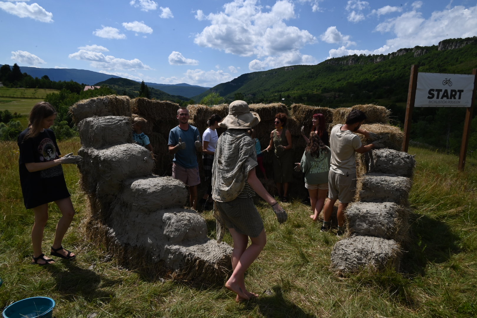 Radionica takođe istražuje održive i privremene tehnike gradnje. Osnova strukture biće prethodno pripremljena od bala slame, a učesnici će potom biti pozvani da je premažu zemljanom mešavinom — prirodnim spojem gline, vode i slame. Kroz ovaj zajednički čin, svaki učesnik ima priliku da ostavi svoj trag — ističući otvore, kreirajući teksture površine ili osmišljavajući uzorke. Tokom vremena, ovako ko-kreirana struktura prerasta u vibrantan, živi prostor koji se razvija zajedno sa zajednicom.