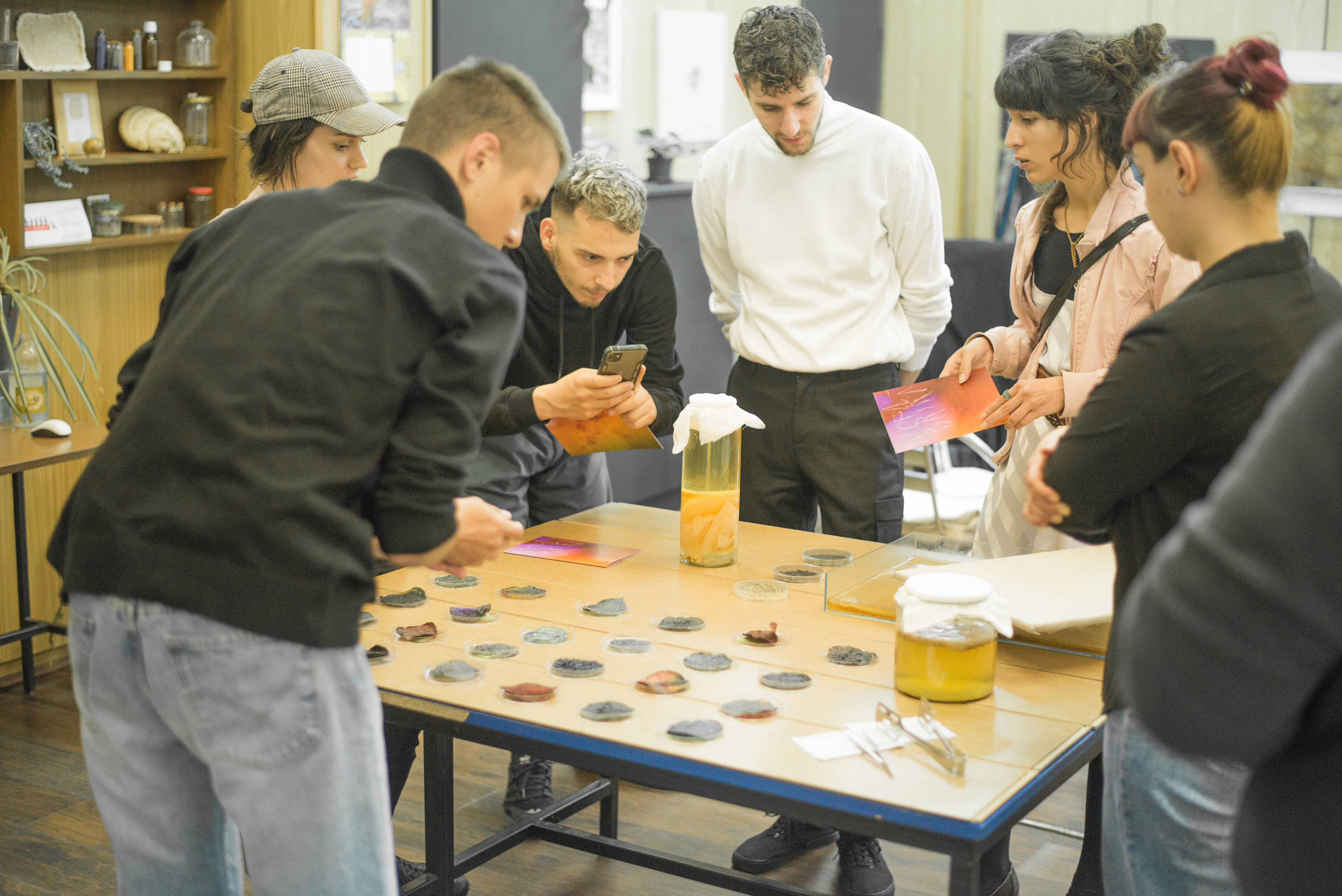 Materijal SKOBI smo u okviru projekta BIOFABRIKA promovisali kroz nekoliko faza: putem radionica za pravljenje materijala u kojima su učestvovali učenici umetničke srednje škole; kroz predstavljanje koncepta bio-razgradivog dizajna, kroz nekoliko samostalnih i grupnih izložbi i „site-specific“ akcija, panel diskusija i na samom kraju prikazivanjem dokumentarnog filma o procesima nastalim tokom trajanja samog projekta. U tome su nam pomogli brojni umetnici i stručnjaci, kako inostrani tako i domaći: kustosi, dizajneri, agenti umetnosti, mikrobiolozi, arhitekte. Zajedno smo propitivali ekološke i savremene prakse u oblasti bio umetnosti i dizajna i prikazali smo neka umetnička i komercijalna rešenja koja nam nudi material SKOBI.