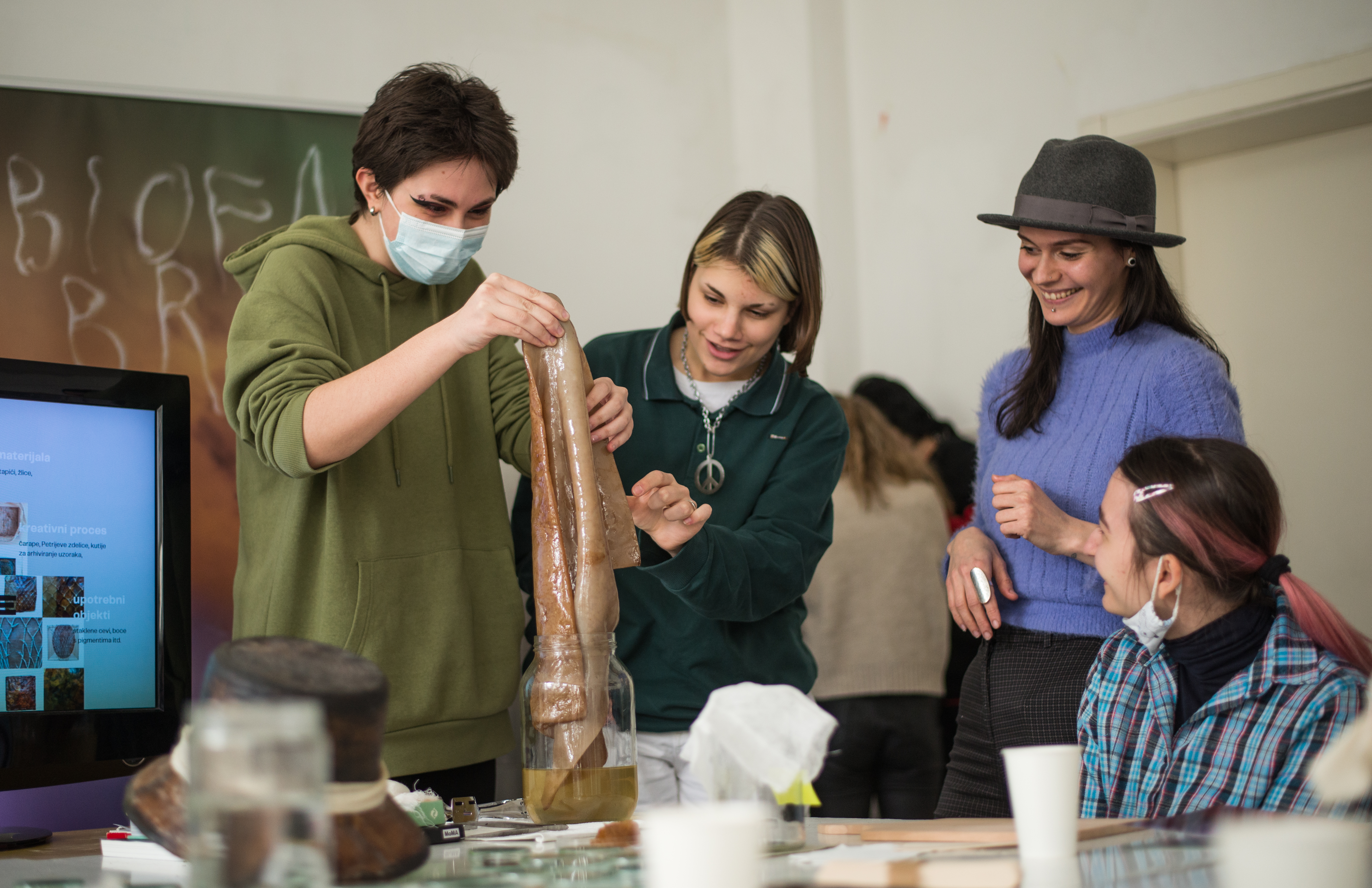 Biofabrika predstavlja umetničku produkciju u obliku eksperimenata, gde se koristi i obrađuje potpuno nov, biorazgradiv i održiv materijal – SKOBI (SCOBY), skraćenica za simbiotsku kutluru bakterija i kvasca. Mlada vizuelna umetnice Adrienn Ujhazi je prva umetnica u Srbiji koja bazira svoje stvaralaštvo na uzgajanju biološkog i biljnog materijala SKOBI. Glavna namena ovog materijala je da ponudi alternativna rešenja u cilju očuvanja životne sredine, kao, na primer, da zameni plastiku kao najvećeg zagađivača planete, ali je otkriven i njegov veliki potencijal u zameni tekstila.