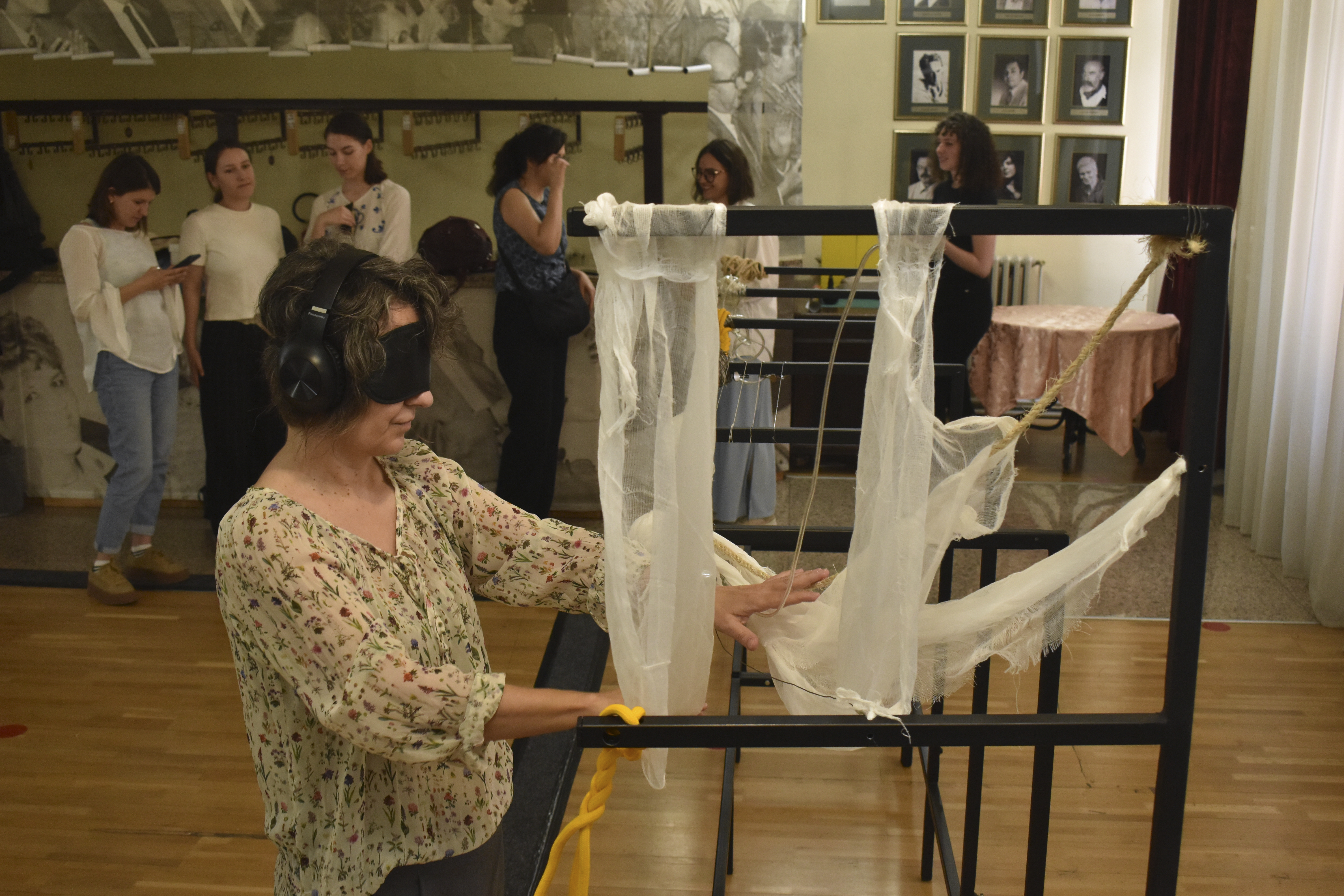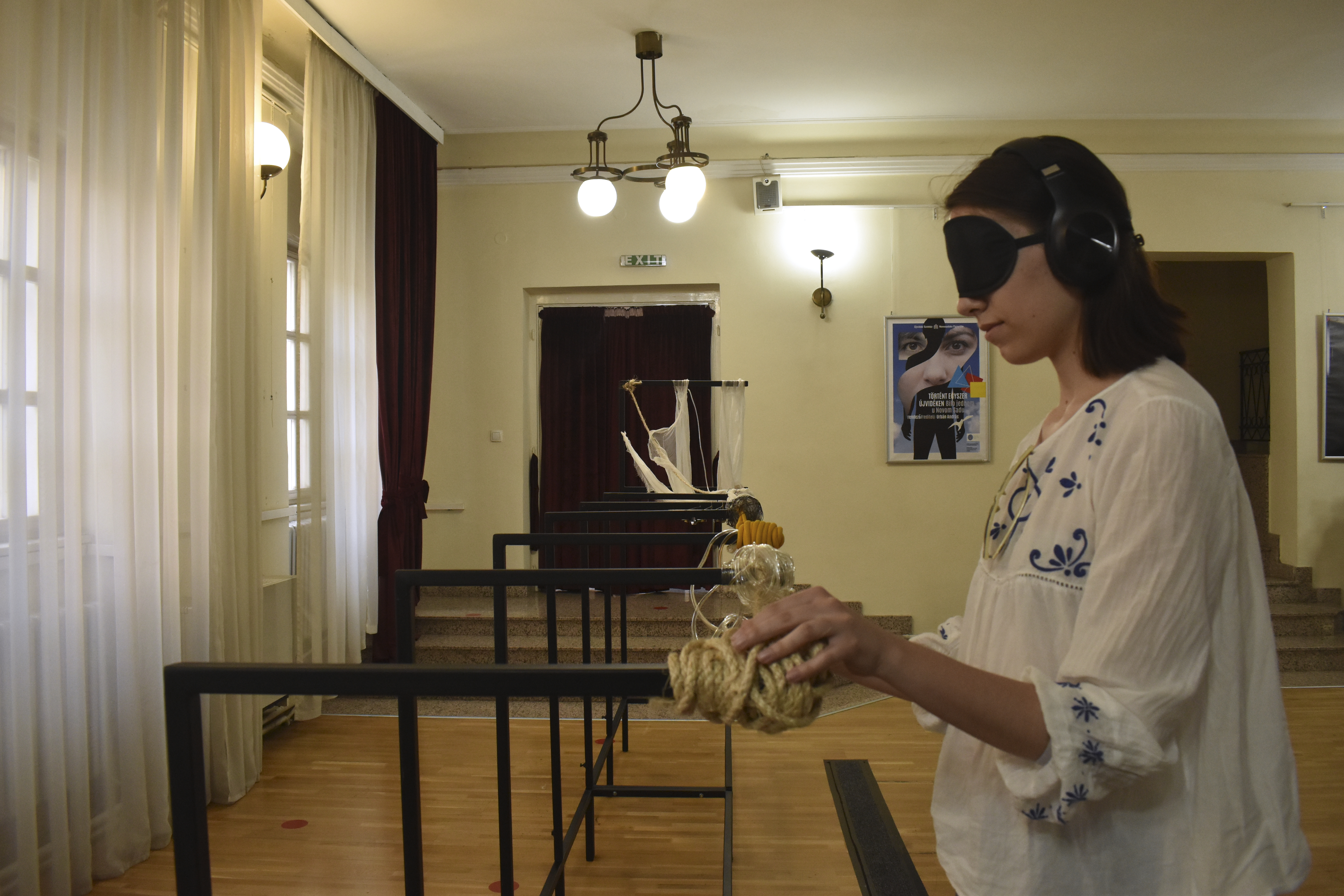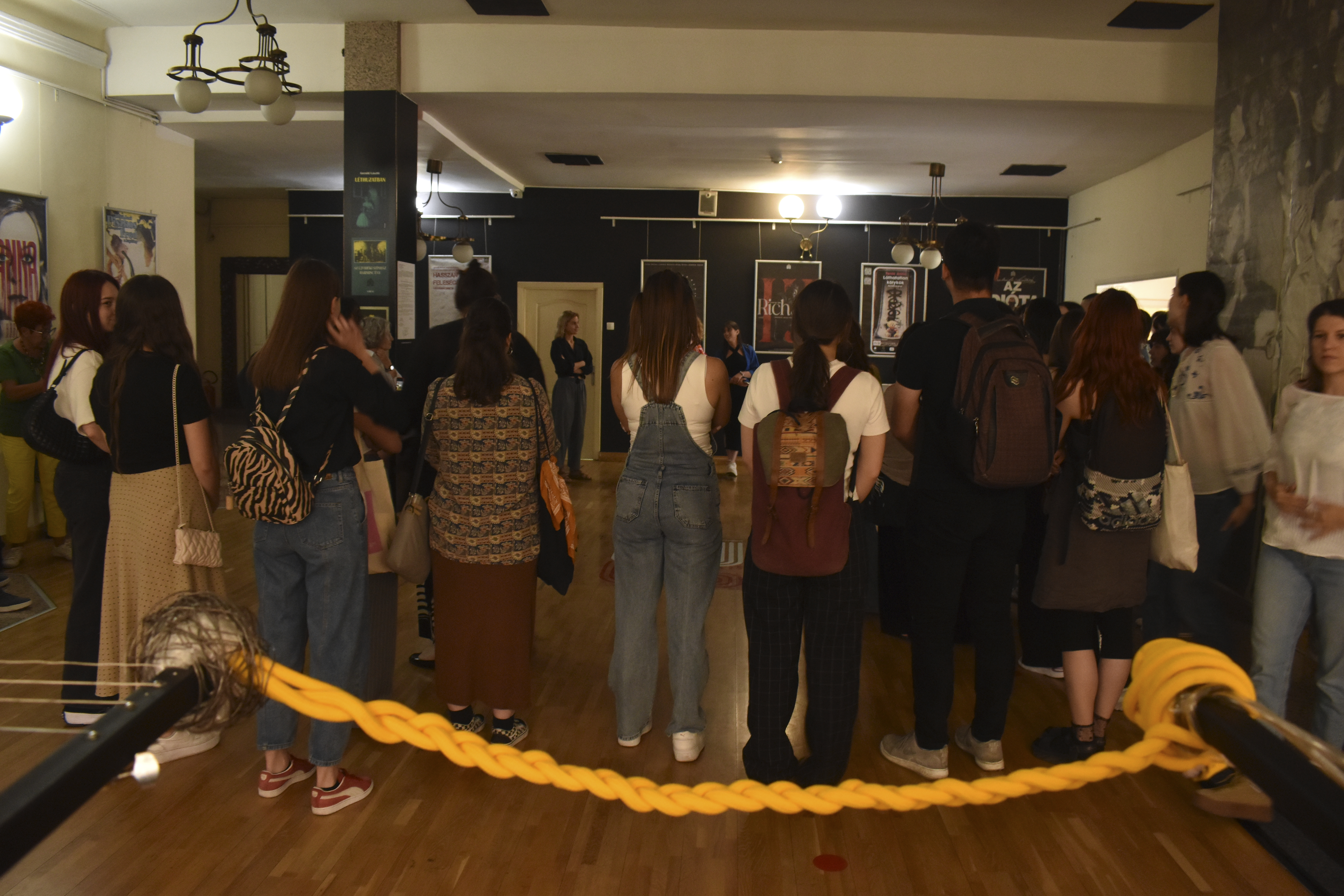 The project was carried out in three segments. Lectures on inclusive art, visual poetry, and universal design served as a foundation for developing students’ artistic ideas and considering spatial perception from the perspective of the visually impaired. In a workshop format, a joint literary work – a poem – was created, followed by a tactile installation based on the use of stage tools, primarily sound and tactile materials, as well as developing an active relationship with space and the audience. The final part involved designing the exhibit space according to universal design principles and showcasing the work at the 69th Sterijino Pozorje, in the lobby of the Novi Sad Theatre – Újvidéki Színház.