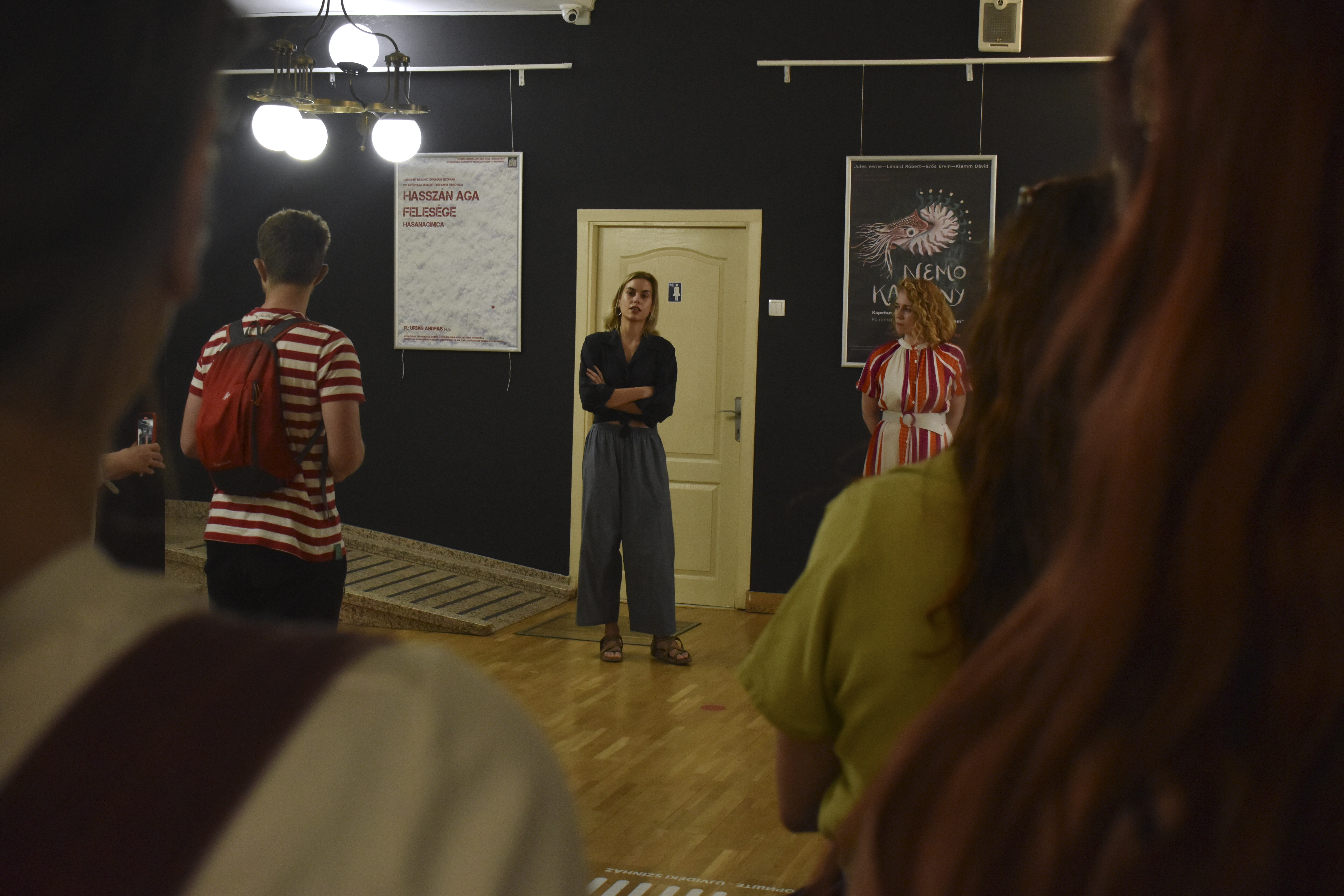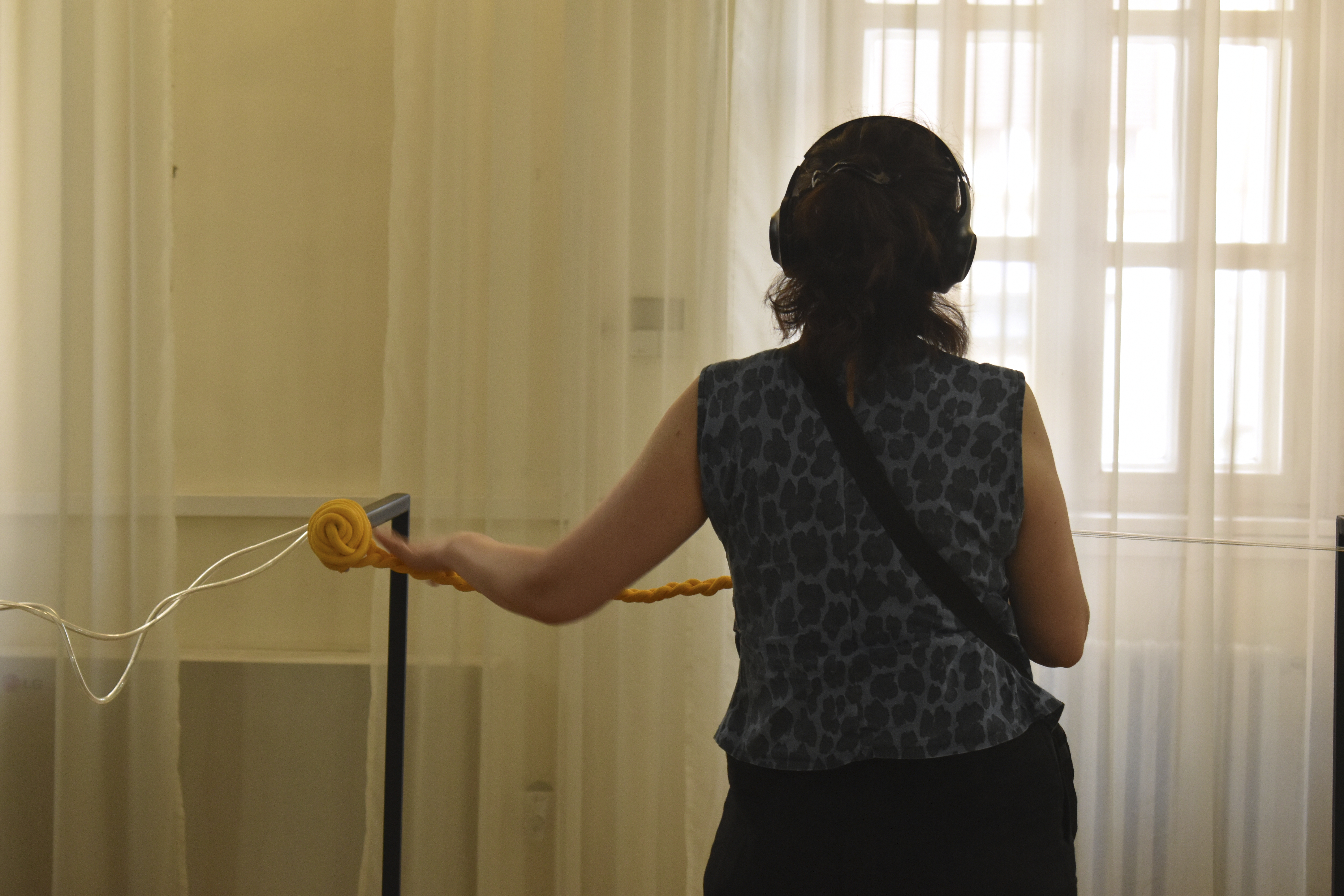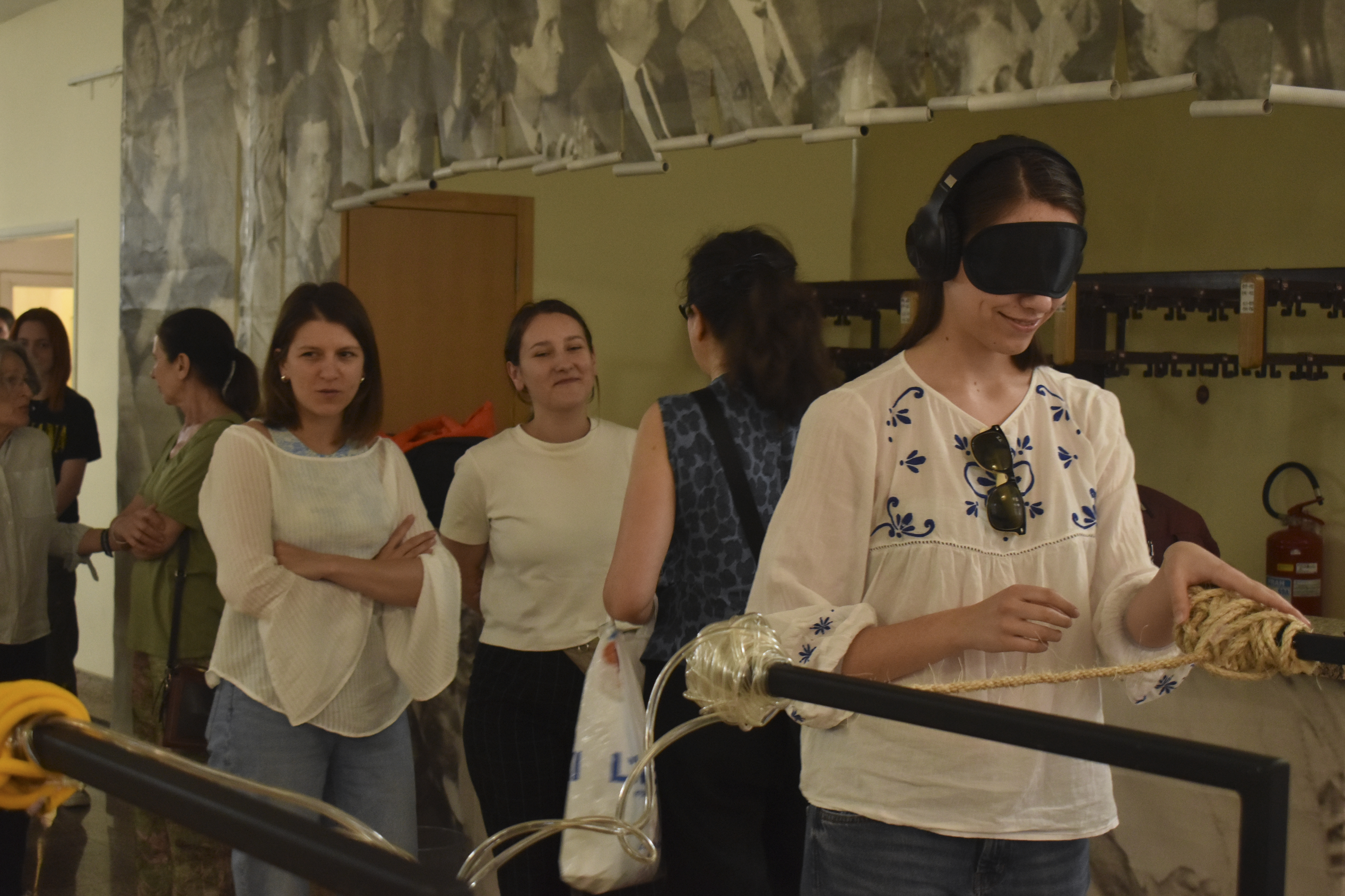 The project was carried out in three segments. Lectures on inclusive art, visual poetry, and universal design served as a foundation for developing students’ artistic ideas and considering spatial perception from the perspective of the visually impaired. In a workshop format, a joint literary work – a poem – was created, followed by a tactile installation based on the use of stage tools, primarily sound and tactile materials, as well as developing an active relationship with space and the audience. The final part involved designing the exhibit space according to universal design principles and showcasing the work at the 69th Sterijino Pozorje, in the lobby of the Novi Sad Theatre – Újvidéki Színház.